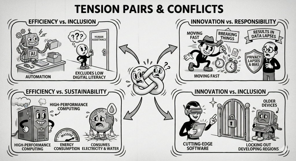 To navigate these trade-offs, organisations should ask themselves who their innovation leaves behind. There is no point in being on the cutting edge of technology, if your target is now priced out of the product/service.